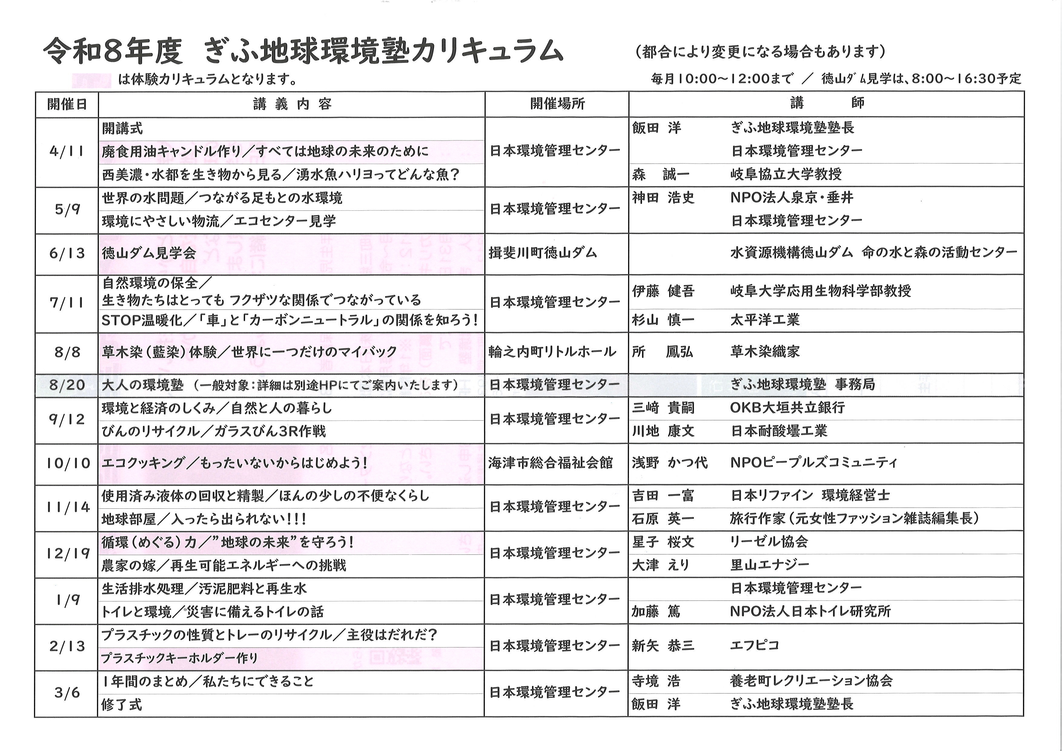 ホームページはこちら「ぎふ地球環境塾」外部リンク