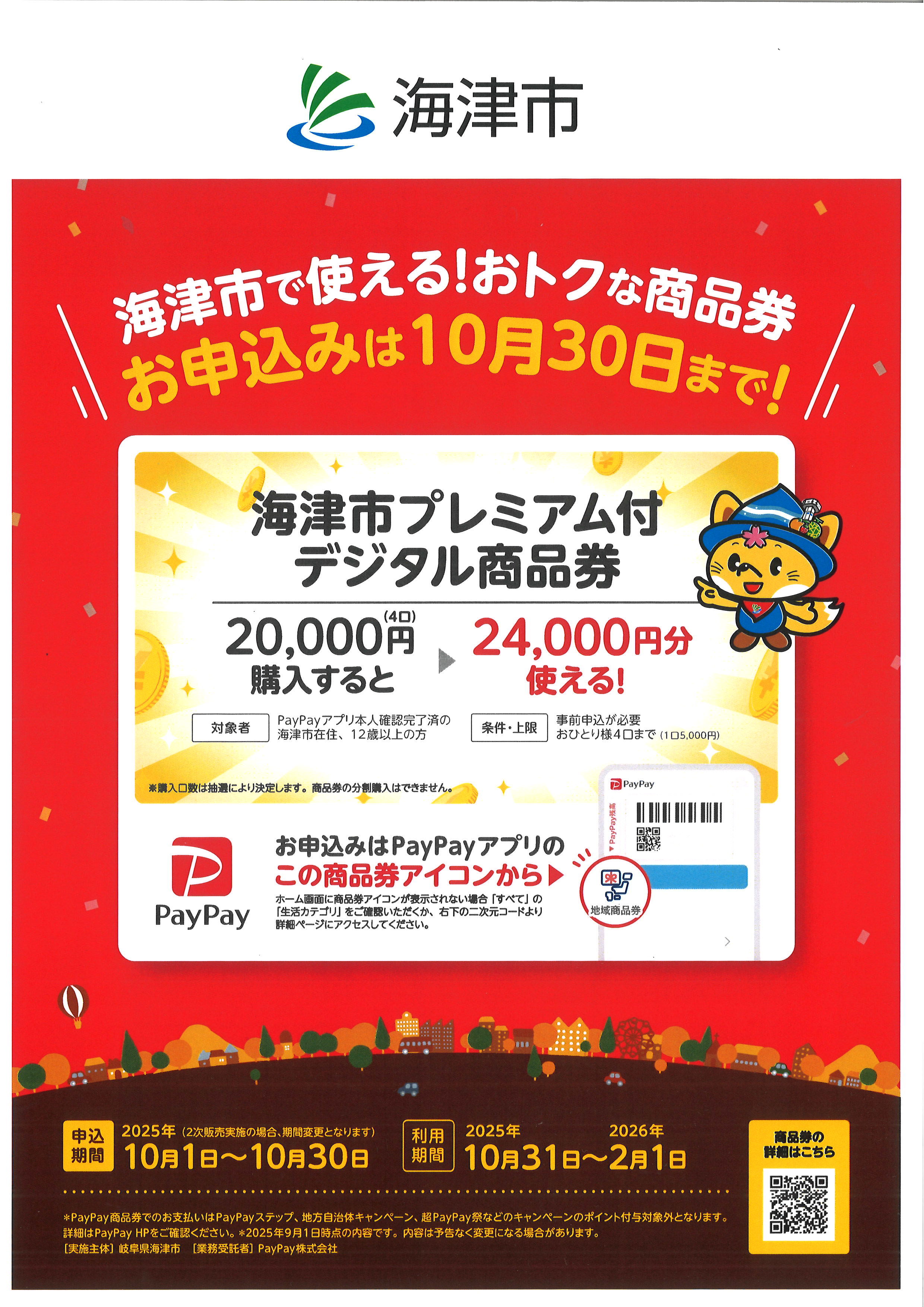 物価高騰の影響を受ける市民生活を応援し、地域での消費喚起と経済の活性化を図るため、キャッシュレス決済サービス「PayPay」と連携したお得なデジタル商品券の販売に伴い、申し込みを開始します。