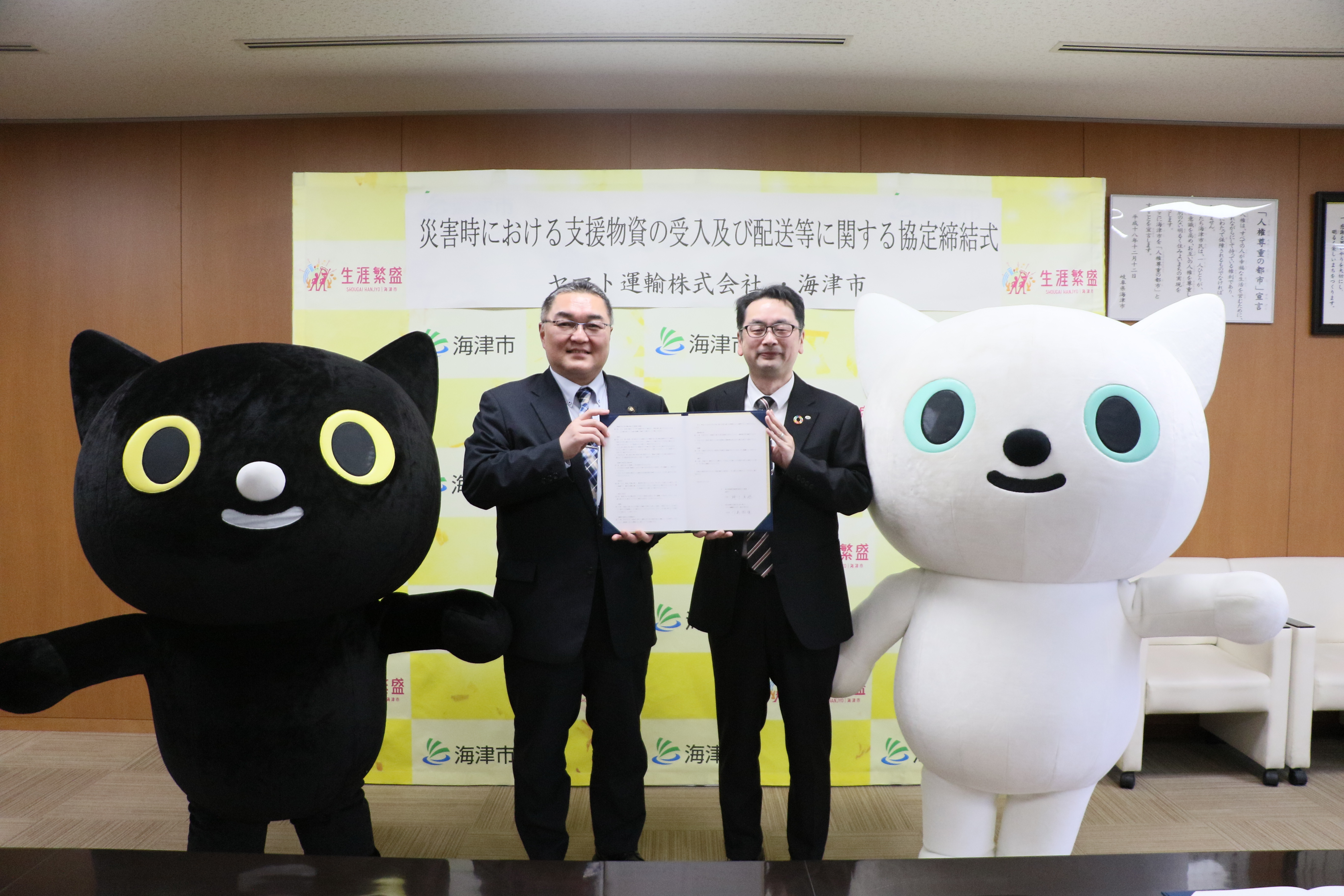 市内で大規模災害が発生した場合、被災者に対して食料および生活必需品等の物資の安定供給を行うことにより、被災者の生活の安定を図ることを目的として、ヤマト運輸株式会社と「災害時における支援物資の受入および配送等に関する協定」を締結しました。