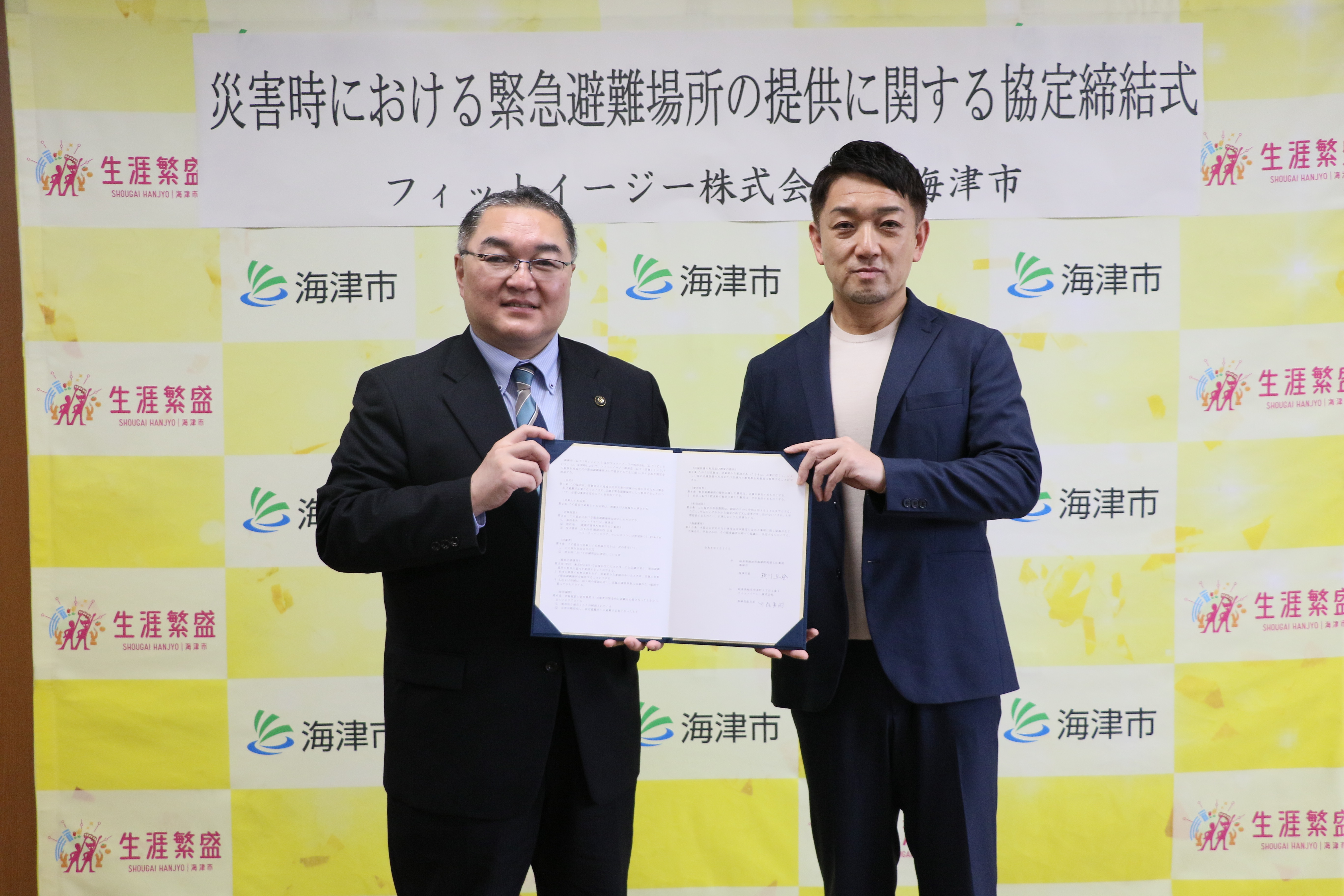 FIT-EASY海津店周辺の地域住民が災害の危険から命を守るため、緊急的に避難が必要となったときに、店舗を緊急避難場所として提供することを目的として、フィットイージー株式会社と「災害時における緊急避難場所の提供に関する協定」を締結しました。