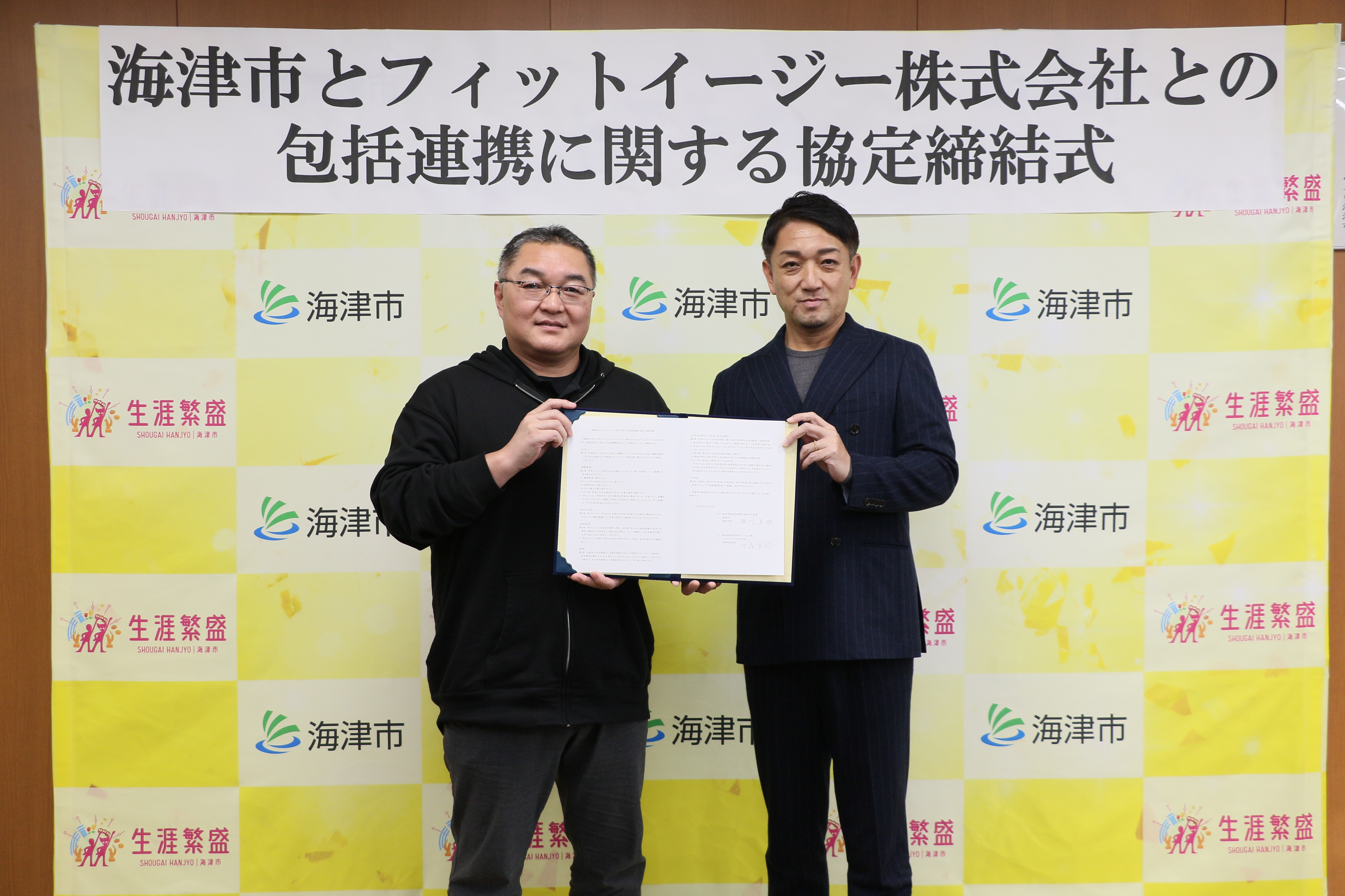 「海津市とフィットイージー株式会社との包括連携に関する協定」締結式の様子